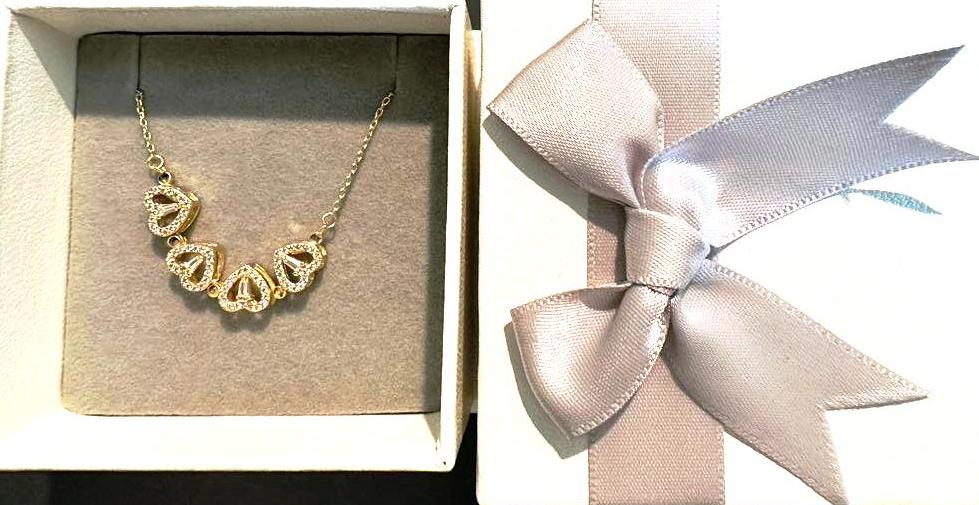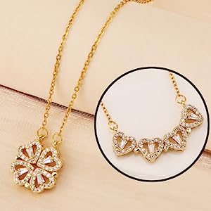 This revolutionary design with magnetic suction enables multiple wearing styles. When closed, the magnetic attraction unites to form the Four Leaf Lucky Clover Pendant, and when flipped and pulled apart, it forms a delicate heart-shaped gold necklace.